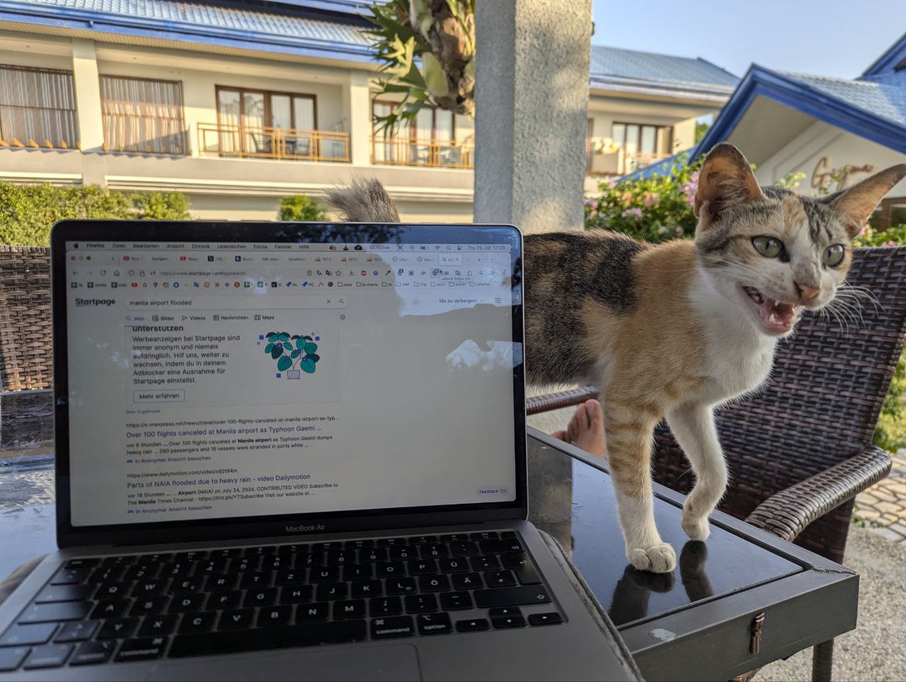 Ich hab heute wie jeden Morgen ein Buch gelesen und plötzlich fiel die Klimaanlage aus. Auf dem Weg zur Arbeit sah ich warum. Sogar auf der Arbeit (5km entfernt) gab es keinen Strom. Aber der WLAN Router wurde am Leben gehalten, mit einem Generator. Wenn das mal kein Luxus ist!