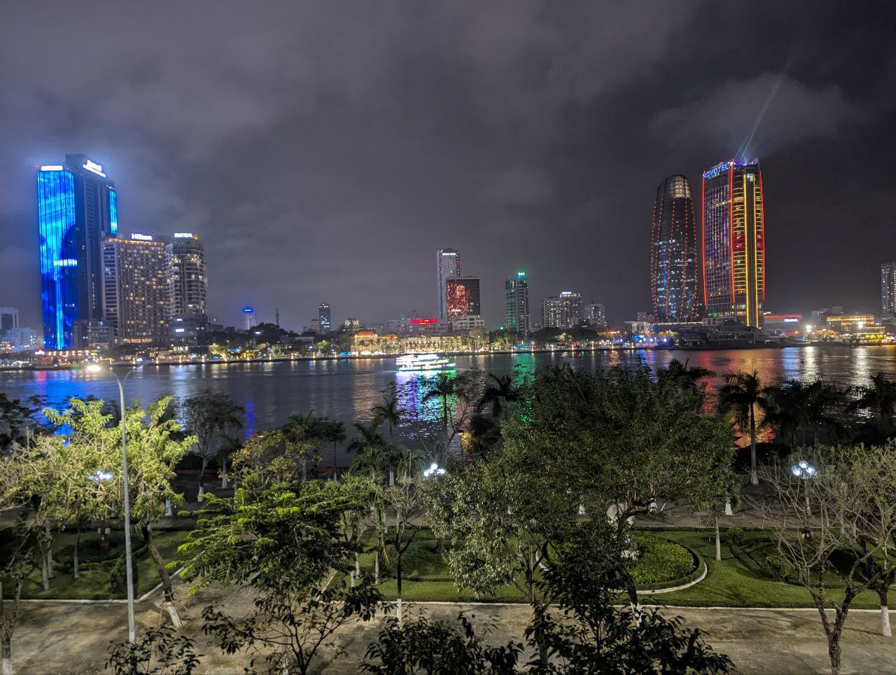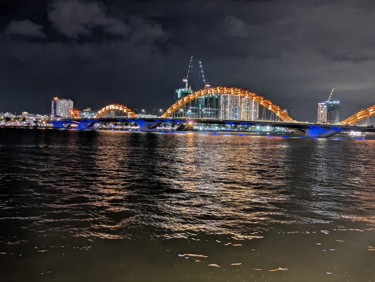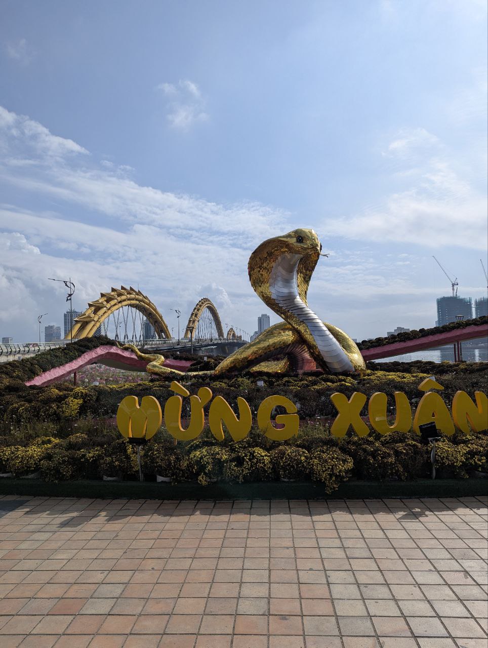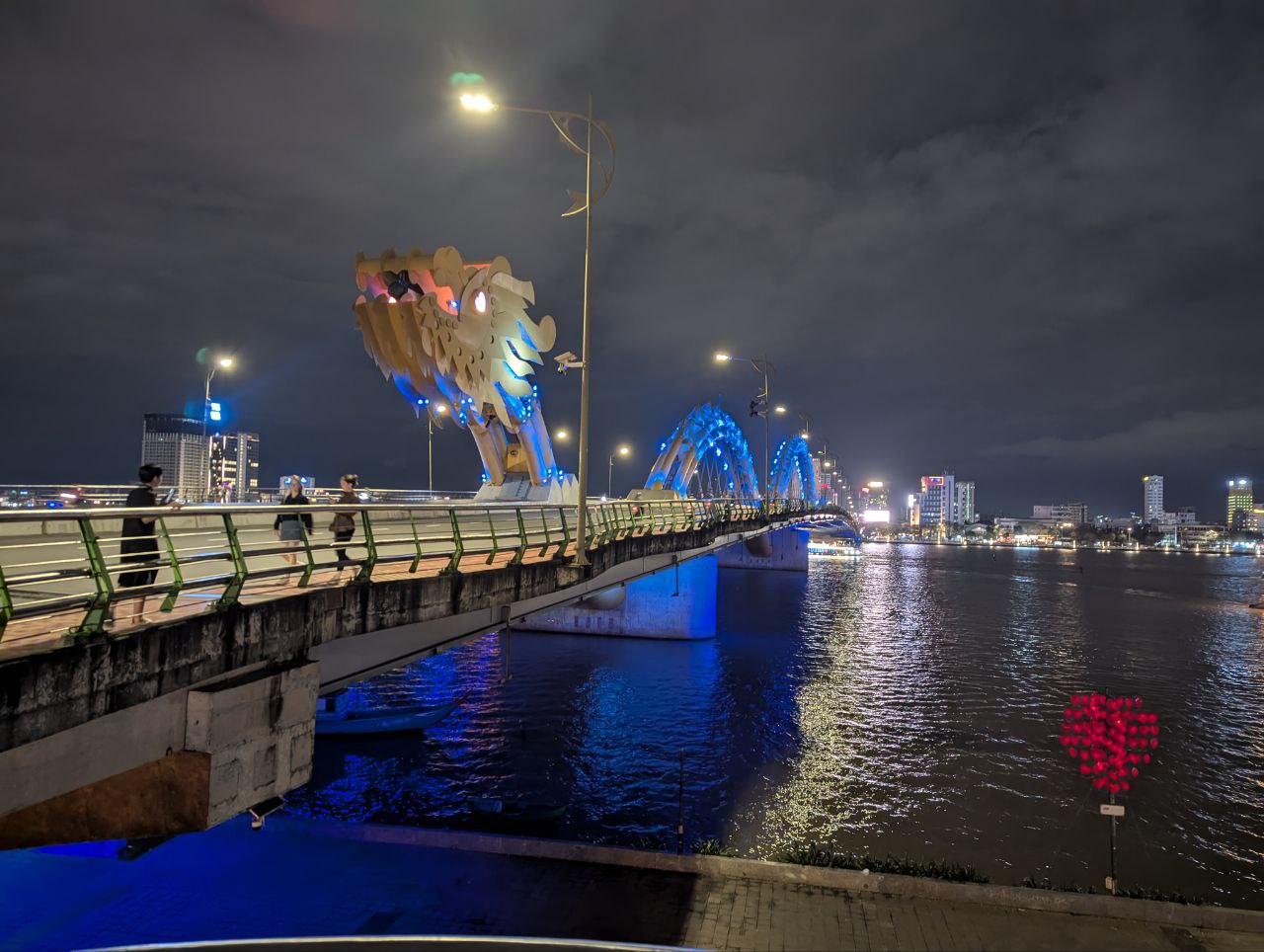 Die Drachenbrücke, ein Wahrzeichen von da Nang. Am Wochenende spuckt der Drache Feuer ab 21 Uhr. Als angehender rentner bin ich m diese Zeit schon im Bett 🙈