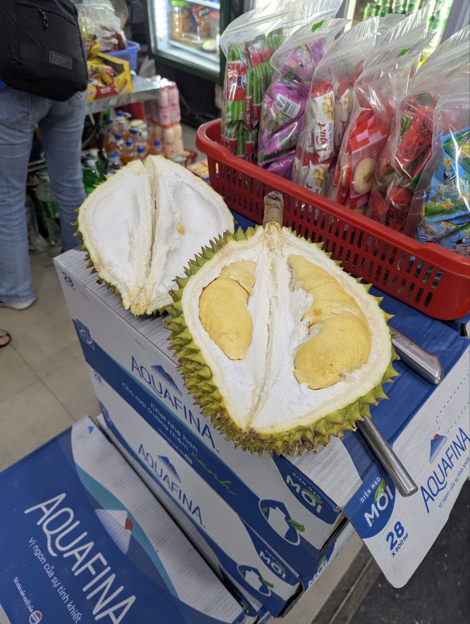 Das ist die wahre verbotene Frucht. In einigen Ländern Südostasiens wird man bestraft, wenn man eine durian z.b. in der Metro isst. Der Geruch ist so intensiv, das er auch Tage später noch da ist, auch wenn die Frucht schon weg ist. Und ich bin süchtig nach ihr geworden 🙈