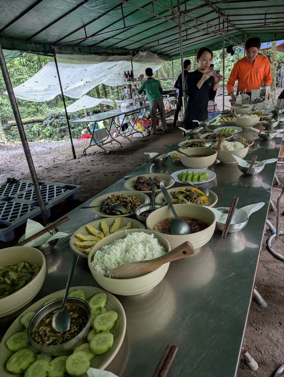 Die Wandertour wurde abgesagt, weil Elefanten im Dschungel sind, das erste Mal seit 10 Jahren. Schlecht für die Teilnehmer, aber gut für die Elefanten, da ihr Lebensraum respektiert wird. Die Kanutour ist besser für Rentner geeignet 😅