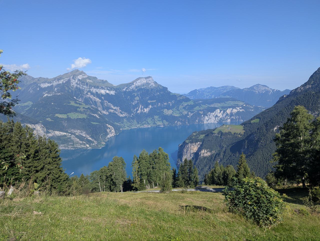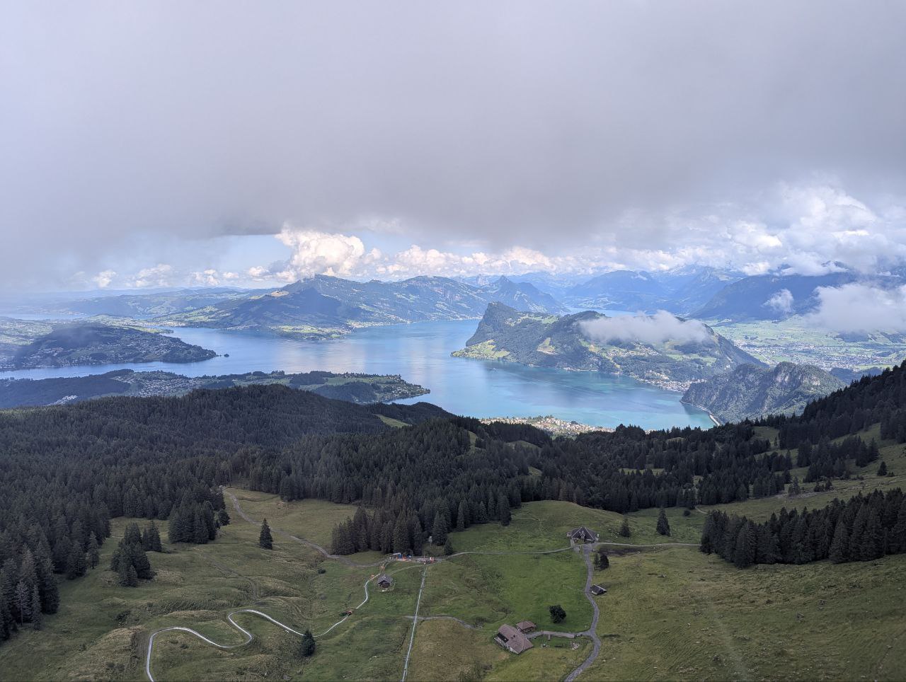 Der Vierwaldstättersee hat viele Arme und geht bis mach Luzern. Wir sind hier auf 1400 Höhenmetern.