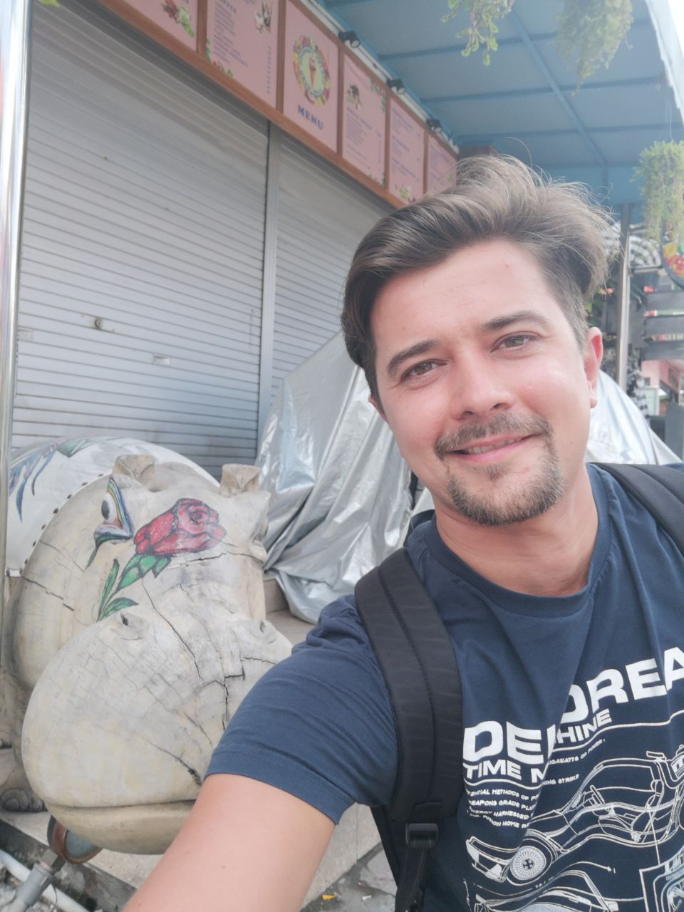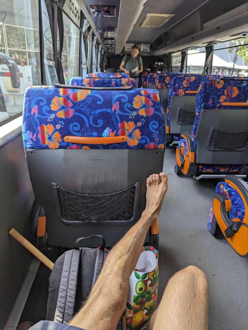 So sah ich die ganze Zeit aus. Rucksack auf dem Bike und auf der Brust und Tüte zwischen den Beinen 🙈