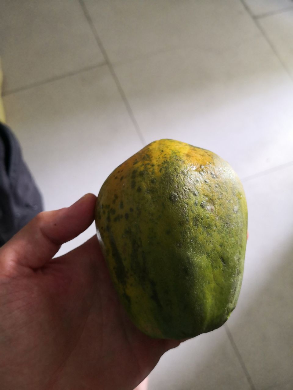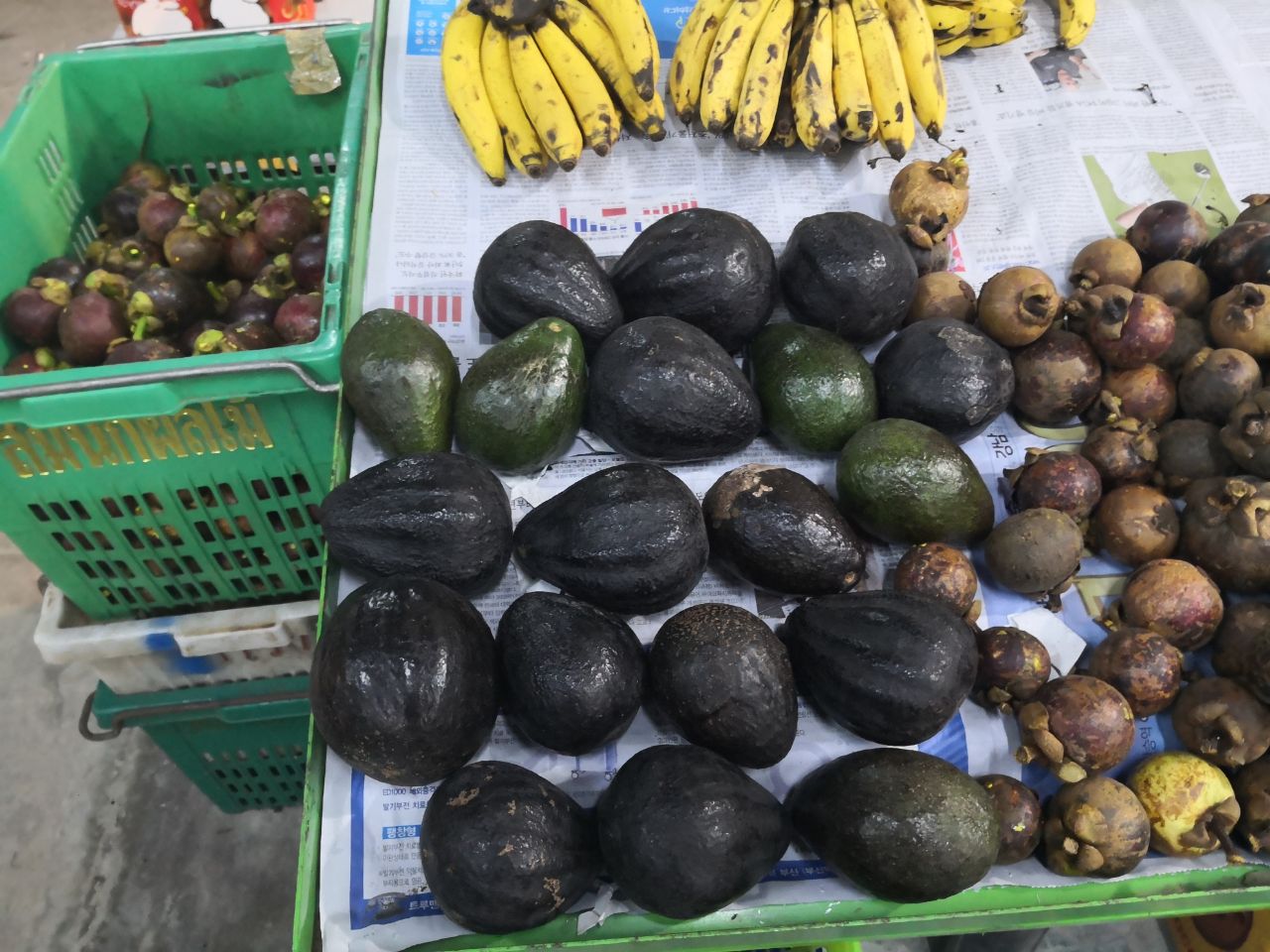 Das ist eine durian. Eines der größten Früchte in den Tropen, wenn nicht sogar die größte (und schwerste). Das Fleisch soll zart-cremig und süß sein, aber auch relativ fettig (wie avocado). Werde sie bei Gelegenheit probieren und berichten.