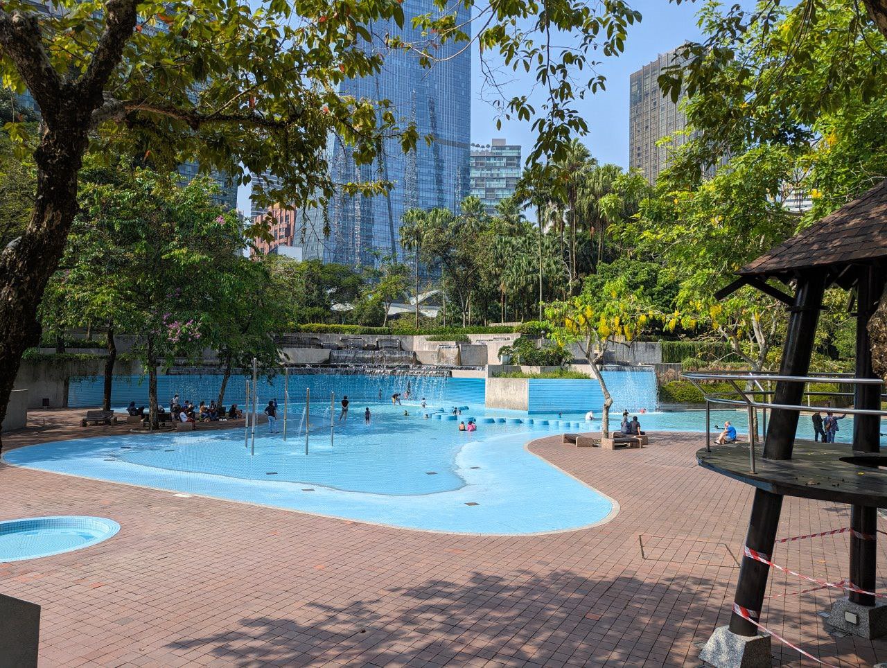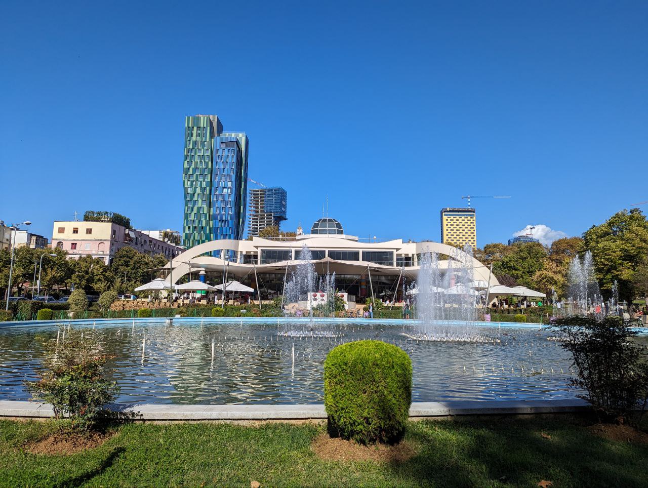 Das ist die Wassershow, die neulich vom Regen storniert wurde. Die haben sich echt Mühe gegeben, top!