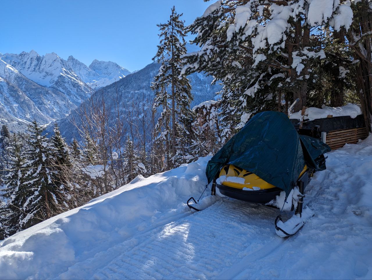 Und so zerbröselt der Keks nun mal. Plan B ist gescheitert nach ein paar hundert Metern. Vllt. Hat der Typ geguckt, ob er weiter fahren kann und gemerkt, selbst für das Schneemobil ist es etwas riskant.